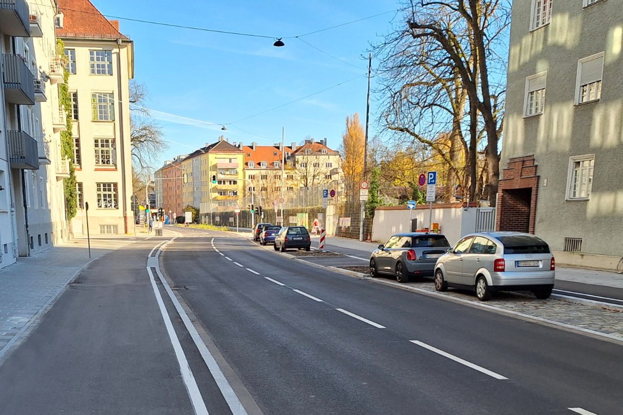Das Baureferat hat den Platz vor dem Kino „Museum Lichtspiele“ fertig umgestaltet und den Kreuzungsbereich an der Lilienstraße verkehrssicherer umgebaut.
