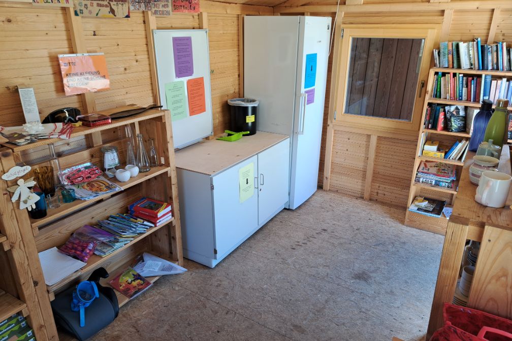 Die Idee wurde geboren, nachdem ein gut erhaltenes Gartenhaus vom Nachbar-Kindergarten, der abgerissen wurde, übrig war. Um es vor der Verschrottung zu retten, überlegten wir uns, wie es für unsere Schule nutzbar gemacht werden könnte und entschieden uns für ein Tauschhaus.