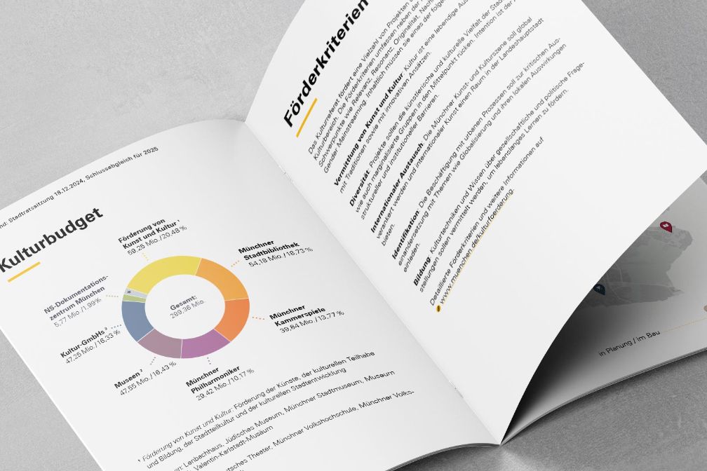 Mit dieser Broschüre erhalten Sie einen Einblick in die Aufgaben, Strukturen und die Budgets des Kulturreferats. Gemeinsam mit vielen weiteren Akteur*innen, Institutionen und Initiativen sorgen wir für ein vielfältiges Münchner Kulturleben.