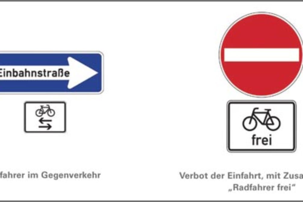 In München ist mehr als die Hälfte der 700 Einbahnstraßen für den gegenläufigen Radverkehr freigegeben. Das spart unnötige Umwege. Allerdings sollten Radfahrer*innen entgegen der Fahrtrichtung besonders vorsichtig fahren. Auch bei der Ausfahrt aus einer Einbahnstraße in Gegenrichtung ist besondere Achtsamkeit geboten: Autofahrer*innen erwarten häufig nicht, dass aus der Einbahnstraße Fahrräder kommen.