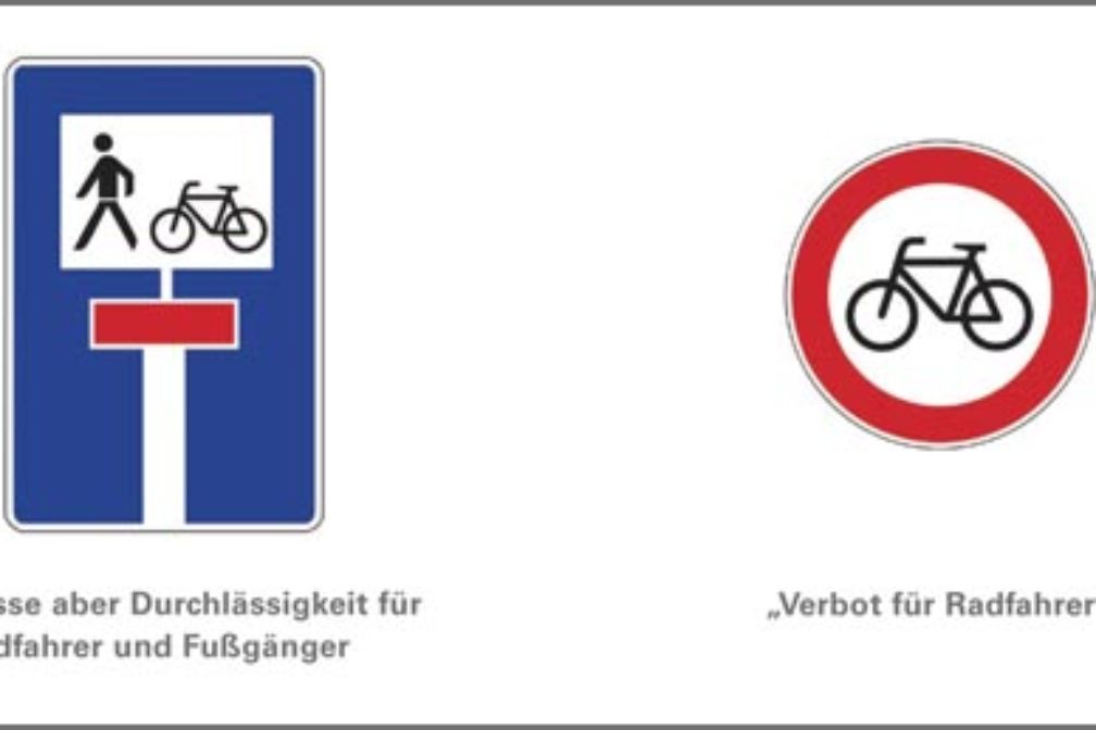 Das Radfahren in Fußgängerzonen ist grundsätzlich verboten. Allerdings kann mit dem Zusatzzeichen „Radfahrer frei“ sowohl in Fußgängerzonen als auch auf Fußwegen Radverkehr zugelassen sein. Fahrräder dürfen jedoch auch dann nur mit Schrittgeschwindigkeit oder angepasster Geschwindigkeit fahren. Fußgänger haben auf der gesamten Fläche jederzeit Vorrang.