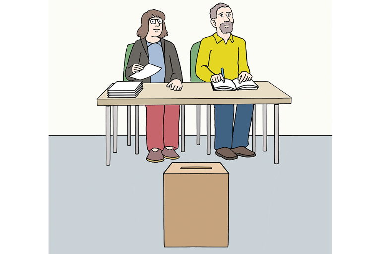 Die Wahl-Helfer machen einen Haken neben Ihren Namen.