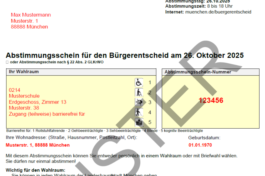 Die Fotos von dem Stimm-Zettel und dem Abstimmungs-Schein kommen von dem Wahl-Amt München.