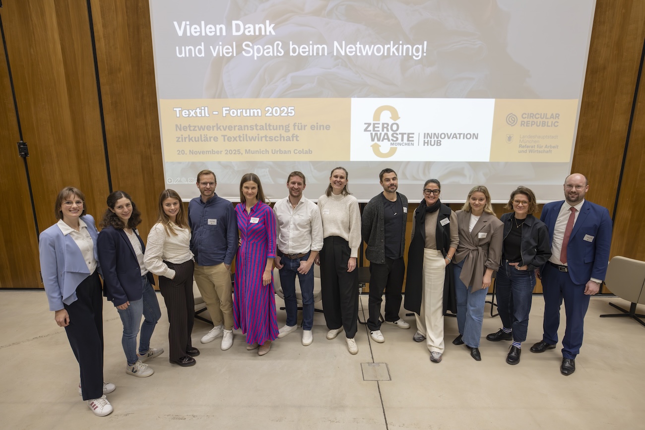 Zu den Höhepunkten zählen eine Diskussion über aktuelle regulatorische Veränderungen und deren Implikationen für die Branche sowie ein Panel zur Sammlung und zum Recycling von Schuhen. Zudem erwartet Sie beim Gallery Walk im Foyer des Munich Urban Colab die Gelegenheit, Startups mit wegweisenden Recyclingtechnologien und neuen Nutzungskonzepten sowie Projekte der Landeshauptstadt München zu zirkulären Textilien kennenzulernen.